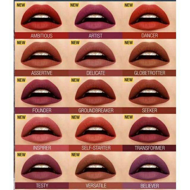 Produk ini memiliki 36 Variasi Shade yaitu : 50. VOYAGER,65. SDUCTRESS,75. FIGHTER,80. RULLER,118. DANCER,125. INSPIRER,130. SELFSTARTER,205. ASSERTIVE,210. VERSATILE,225. DELICATE,150. SAVANT,155. PATHFINDER,170. INITIATOR,175. RINGLEADER,285. GRITTY,295. DAUNTLESS,310. ACHIEVER,220. AMBITIOUS,15. LOVER,115. FOUNDER,135. GLOBETROTTER,120. ARTIST,70. AMAZONIAN,117. GROUNDBREAKER,245. SEEKER,305. UNCONVENTIONAL,315. EXTRAORDINARY,365. ENTHUSIAST,360.DISCOVERER,370. OVERSEER,375. PEACEKEEPER,380. ENCHANTER,385. VALIDATOR,350. FREETHINKER,355. SHAKER,335. HUSTLER,